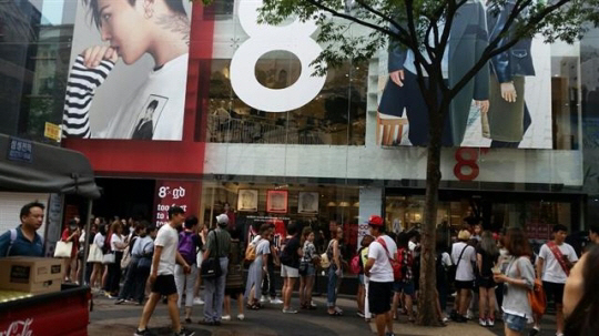 E 브랜드는 대표적인 한국의 패셔니스타 지드래곤과의 협업을 통한 상품을 출시했다. 지드래곤이 디자인 전반에 참여한 '에잇 바이 지드래곤'과 '에잇 바이 지디스픽'시리즈는 출시되지마자 명동점에서만 2억원 가량의 매출을 올렸다. 평균 하루 매출이 2000만원 가량이었던 이 매장은 지디 효과를 톡톡히 봤다. 뿐만 아니라 지드래곤의 아이템들을 사기위해 길게 줄을 선 행렬도 심심찮게 보였다. E사는 지드래곤 협업 상품을 앞세워 중국 시장에도 진출하기도 했다. E사 측은 "지드래곤 글씨체·타투 문구 등을 새롭게 개발해 디자인에 적용한 아이템들이 한국과 중국 시장에서 모두 인기를 끌었다"며 "누적 매출 80억원을 기록했다"고 밝힌 것에서도 드러난다.