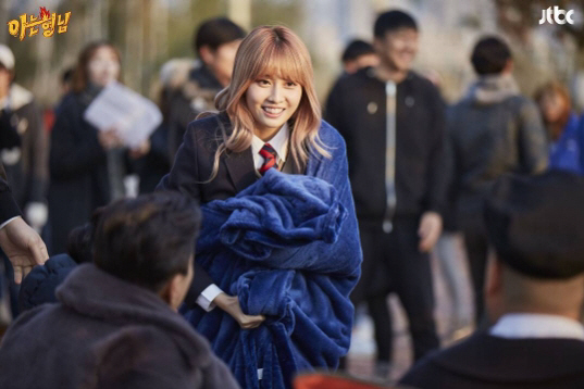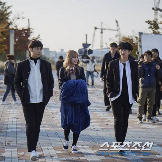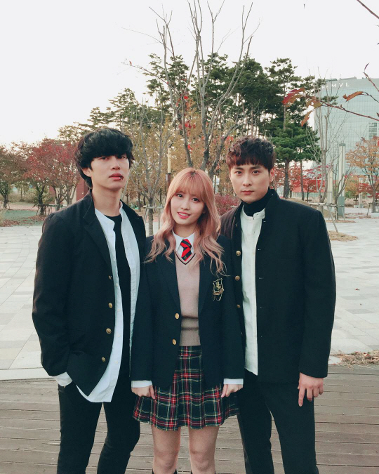 뮤비 주인공으로 출연한 트와이스 모모는 이날 촬영장의 홍일점으로, 김희철-민경훈과 함께 상큼한 비주얼을 뽐냈다.