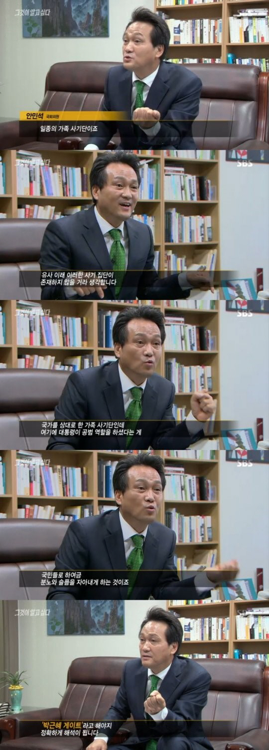 '그것이 알고 싶다' 안민석 국회의원이 "최순실 게이트가 아닌 박근혜 게이트"라고 밝혔다.