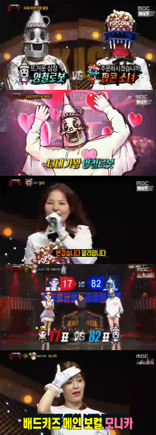 [스포츠조선 이유나 기자]'양철로봇'이 3연승을 내달리던 '팝콘소녀'를 꺽고 새로운 가왕에 등극했다.