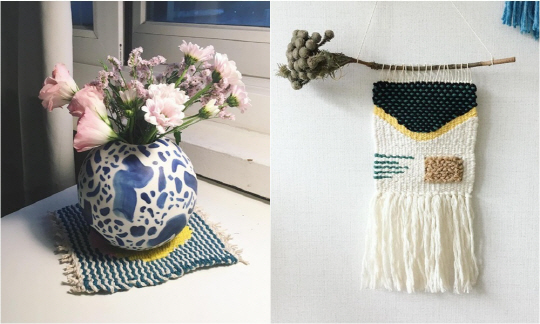 강소영과 곽지영은 위빙 아틀리에 블루 아워(@blue_hour_) 수강생으로, 이상희 작가가 진행하는 위빙 클래스를 통해 자신만의 감성을 담은 태피스트리를 만들어낸다. 이태원 빈티지 가구 거리에 자리 잡은 블루 아워는 블로그나 인스타그램을 통해 수강생을 모집하고 있다. 섬유미술을 전공한 이상희 작가는 위빙에 매력에 대해 이렇게 말한다.