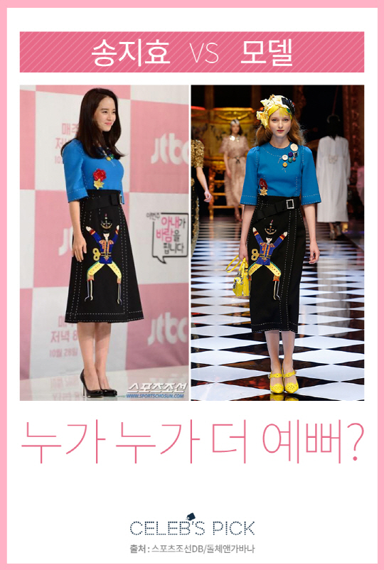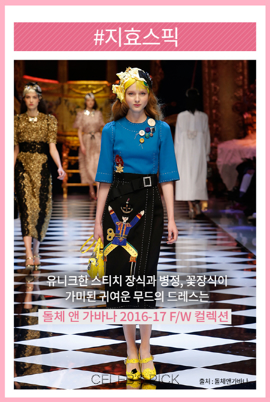 JTBC '이번주 아내가 바람을 핍니다'에서 이선균의 마음을 아프게 만들고 있는 문제의 아내, 송지효. 공감과 분노 사이를 넘나 들며 극 중 재미를 더하고 있는데요. 제작발표회 현장에서는 그 누구보다 아름다웠답니다. 페미닌한 분위기 속 발랄한 포인트를 더한 돌체 앤 가바나 2016-17 F/W 컬렉션 룩을 선택했습니다. 귀여운 병정 일러스트와 스티치가 앙증맞네요.