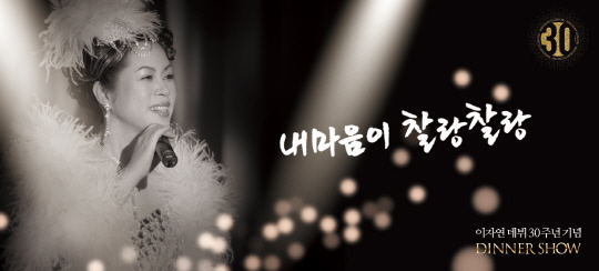 트로트계의 디바 이자연이 데뷔 30주년을 맞아 자선 디너쇼 '내 마음이 찰랑찰랑'을 연다. 오는 12월 16, 17일 워커힐 시어터(쉐라톤 그랜드 워커힐 호텔).