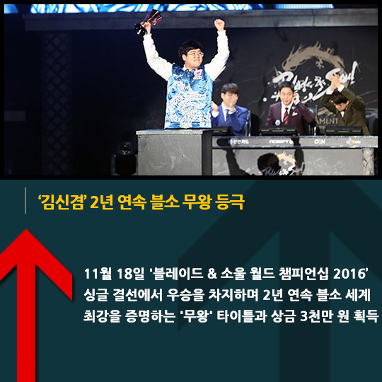 11월 18일 '블레이드 & 소울 월드 챔피언십 2016' 싱글 결선에서 우승을 차지하며 2년 연속 블소 세계 최강을 증명하는 '무왕' 타이틀과 상금 3천만 원 획득