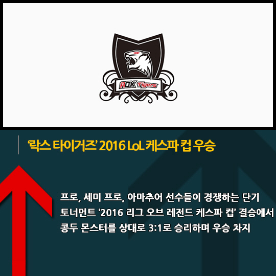 - '락스 타이거즈' 2016 LoL 케스파 컵 우승