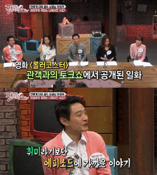 이날 한 기자는 "하정우에게 특이한 취미가 있다"면서 "이 사실은 동료 배우가 밝힌 거다. 하정우가 과거 영화 '콜러코스터'라는 영화를 감독한 적이 있었다. 당시 배우 이지훈 씨가 '하정우 감독님의 비밀을 폭로하겠다'고 하면서 발설한 게 뭐냐면 '나체 사진 수집'이다"면서 "어느날 이지훈 씨가 하정우 감독 집에서 술을 마시고 하룻밤을 지냈다. 이튿날 아침에 일어나 샤워를 하고 있으면 하정우가 들어와 나체 사진을 찍는 다더라. 사진 삭제 조건으로 밥 한 끼를 요구했다고 하더라"고 설명했다.
