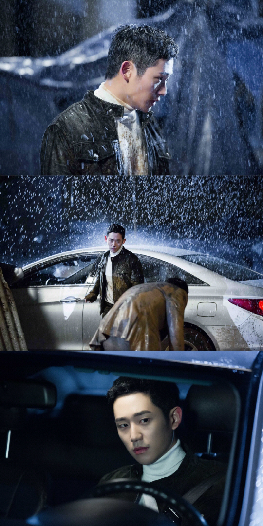 [스포츠조선닷컴 정안지 기자]'불야성' 정해인의 카리스마가 돋보였던 빗속 액션신의 비하인드 컷이 공개됐다.