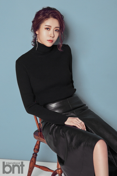 이어진 촬영에서는 블랙 터틀넥과 레더 스커트 그리고 한쪽으로 쓸어넘긴 헤어스타일까지 시크하고 도회적인 매력을 선보였다. 마지막으로는 패턴이 돋보이는 랩스커트를 입고 럭셔리한 무드를 자아냈다.
