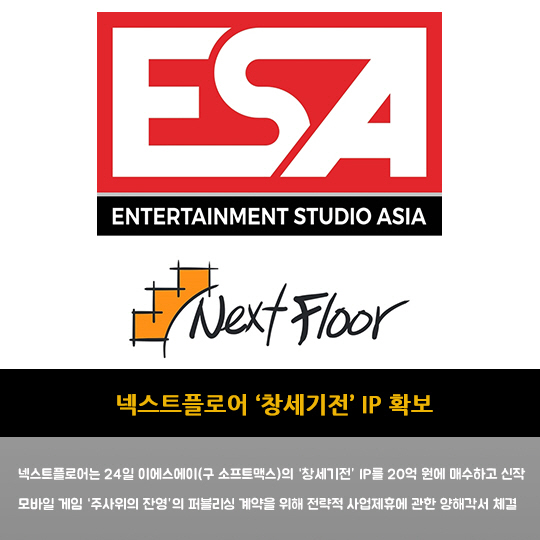 넥스트플로어는 24일 이에스에이(구 소프트맥스)의 '창세기전' IP를 20억 원에 매수하고 신작 모바일 게임 '주사위의 잔영'의 퍼블리싱 계약을 위해 전략적 사업제휴에 관한 양해각서 체결