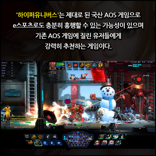 '하이퍼유니버스'는 제대로된 국산 AOS 게임으로 e스포츠로도 충분히 흥행할 수 있는 가능성이 있으며 기존 AOS 게임에 질린 유저들에게 강력히 추천하는 게임이다.