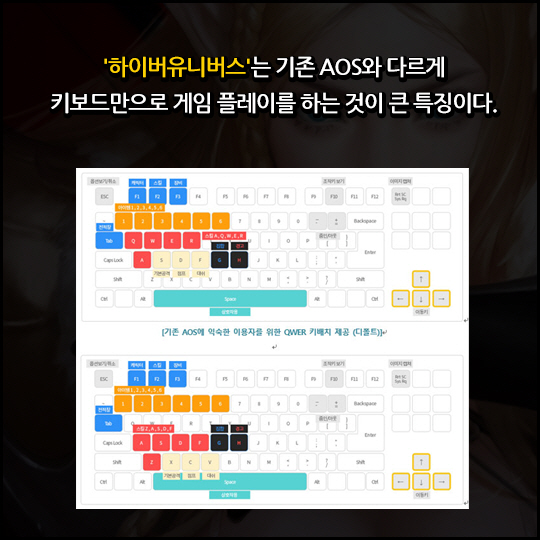'하이버유니버스'는 기존 AOS와 다르게 키보드만으로 게임 플레이를 하는 것이 큰 특징이다.