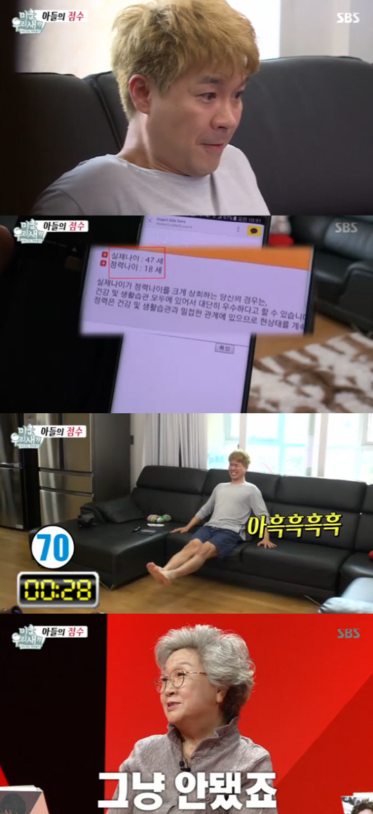 그 결과 정력나이 18세가 나왔고, 박수홍은 카메라에 자랑을 하며 환한 미소를 지었다.