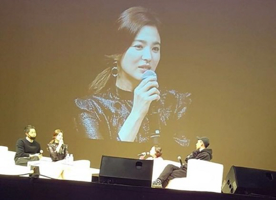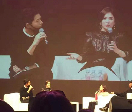 이날 송중기는 송혜교의 데뷔 20주년 팬미팅에 대해 "20주년이라니 정말 대선배님이시다"라며 유아인에게 "우리 둘이 합치면 20주년 정도 될 것 같다"고 너스레를 떨기도 했다. 이날 마스크를 하고 등장한 송중기는 "영화 촬영중에 살짝 다쳐서 밴드를 붙여서 마스크를 했다"고 설명했고, 모자를 쓰고 다소 편안한 복장으로 무대에 오른 유아인은 "친한 누나집에 놀러가는 느낌으로 이 자리에 왔다"고 말해 웃음을 유발했다.