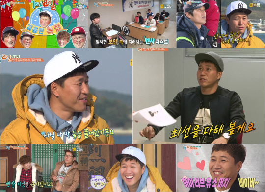 이에 초반 김종민은 "나 못해요. 그런 거"라며 물러서는 듯 하다, 시험장에 들어서자 "최선을 다 해볼게요. 진짜"라며 의지를 굳건히 하는 모습으로 눈길을 사로잡았다. 이와 함께 시험이 시작되자 시험장 문에 합격엿을 붙이는 매니저들의 모습이 그려져 시청자들도 함께 시험에 대한 긴장감을 느끼게 했다.
