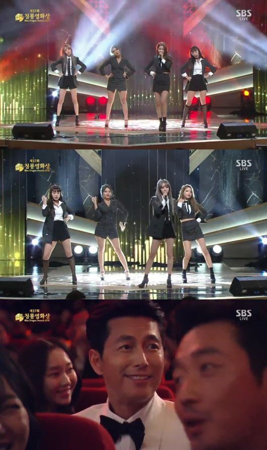 이날 마마무는 '데칼코마니'를 배우들의 명대사를 인용, 위트 있게 개사한 무대로 뜨거운 반응을 얻었다. 특히 멤버 문별은 정우성을 향해 "정우성 내가 원샷하면 나랑 사귀자"라고 해 객석의 배우들뿐만 아니라 관객들의 환호도 한 몸에 받았다.
