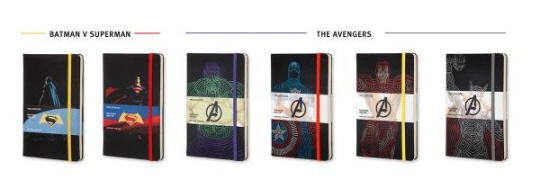 노트 브랜드 몰스킨(Moleskine)이 전 세계 흥행 돌풍을 일으킨 DC코믹스와 마블의 히어로를 노트에 담아 마니아들의 소장 욕구를 자극하고 있다. 몰스킨 '슈퍼 히어로 리미티드 에디션'은 DC코믹스의 배트맨 대 슈퍼맨 2종과 마블의 어벤져스 4종을 포함한 총 6종으로 구성됐다. 배트맨 대 슈퍼맨 리미티드 에디션은 두 영웅의 갈등을 주제로 제작된 영화에서 영감을 얻었으며, 히어로의 고독함을 몰스킨만의 감성으로 표현하여 표지를 장식했다. 어벤져스 리미티드 에디션은 핸드 드로잉 기법으로 표현한 새로운 어벤져스를 담았다. 캡틴 아메리카, 아이언맨, 토르, 헐크 4종으로 출시되는 이번 에디션은 비비드한 각 영웅의 대표 컬러와 단순한 선으로 재해석한 일러스트가 특징이다. 특히, 히어로 별로 특별 제작된 내부 디자인과 스티커가 포함되어 있어 마니아들 사이에서 인기를 끌고 있다.