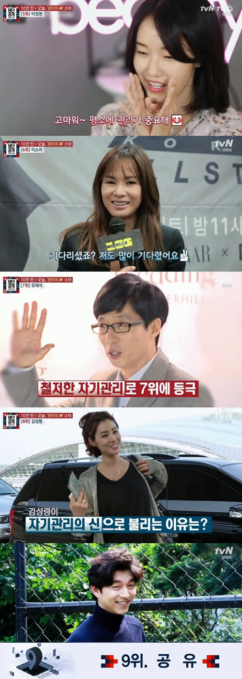 9위에 오른 공유는 동료 연예인들도 인정한 자기관리의 끝판왕이다. 특히 공유는 꾸준한 운동과 식이요법으로 10년 전보다 더 훌륭한 몸매를 완성 '몸매 깡패'로 거듭났다.