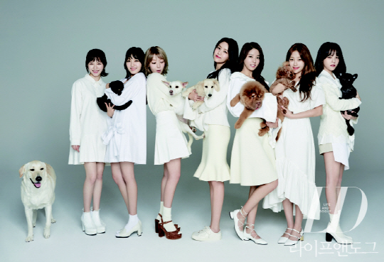 초아는 동물시민단체 카라(KARA)의 입양카페 아름품에 살고 있는 유기견 백설이와 함께했다. AOA 멤버들은 화이트 톤 의상과 내추럴한 스타일링으로 평소 반려동물과 나눠온 사랑을 편안한 분위기 속에 녹여냈다.