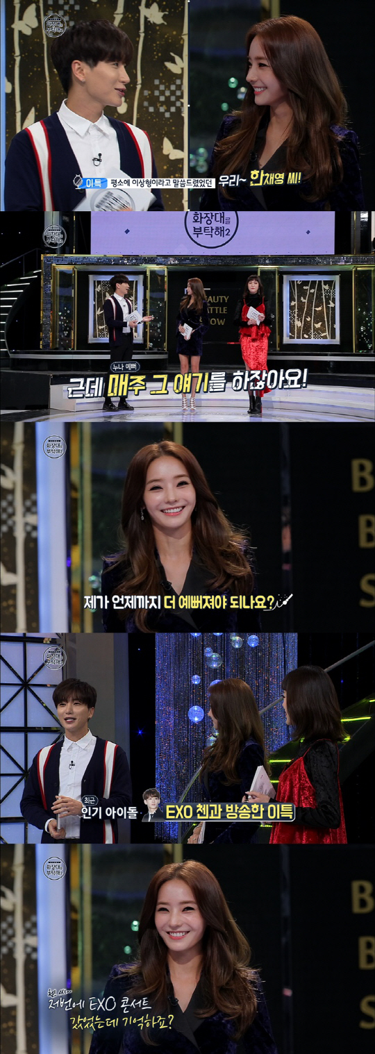 이특은 "여러 번 말씀 드렸지만 저의 이상형인 한채영과 함께 방송할 줄 몰랐다"며 "정말 예쁘신 분과 함께라 너무 좋다"고 팬심을 감추지 않았다. 이에 한채영은 "매주 그 말을 하시는데 도대체 저는 언제까지 예뻐야 하는 거냐"며 "이특이 말로만 그런다"고 꼬집어 현장의 모두를 웃게 했다.