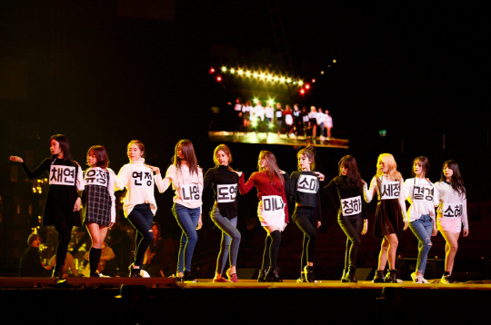 아이오아이가 완전체로 '2016 MAMA' 무대에 선다. 리허설 중 포착된 사진에는 서로의 어깨에 손을 올리고 안무를 연습하고 있는 아이오아이의 모습이 담겨있어 무대에 대한 궁금증을 자극하고 있다.