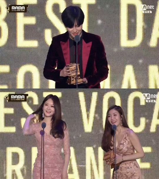 [스포츠조선닷컴 정안지 기자] '2016 MAMA' 태민과 다비치가 퍼포먼스상을 수상했다.