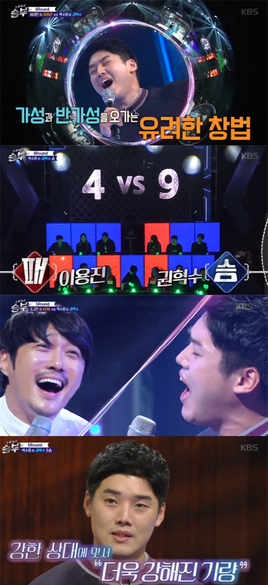 이상민은 권혁수에게 "강한 상대를 만나니까 더 강해졌다"며 칭찬했다. 김형석은 "많이 들어보고 불러본 사람에게 장사는 없다. 대단하다"며 실력을 인정했다.