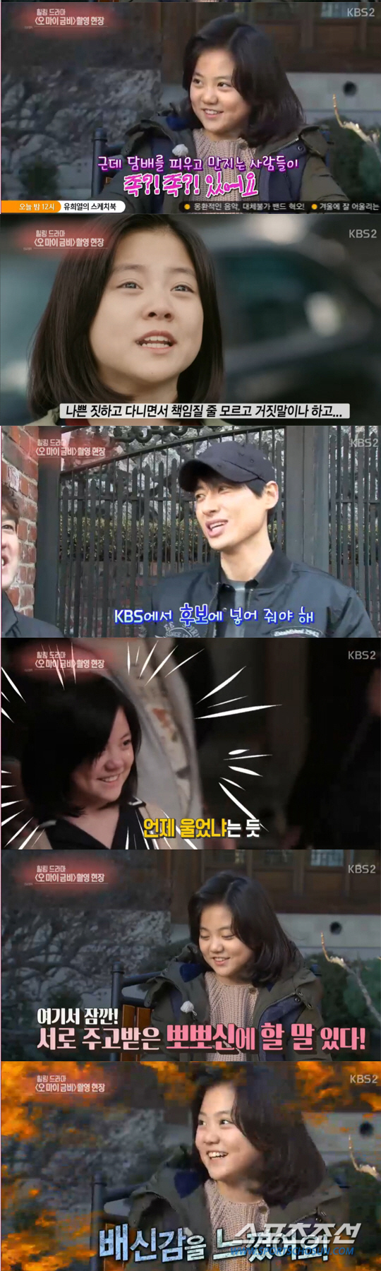 [스포츠조선닷컴 김영록 기자]'오마이금비' 허정은이 박민수와의 뽀뽀씬에 대해 배신감을 토로했다.