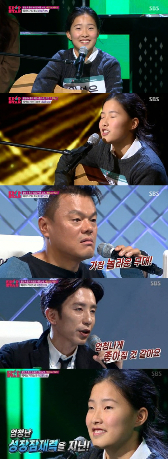 [스포츠조선닷컴 정유나 기자] 'K팝스타6'에 천재적인 음악성을 갖춘 소녀가 등장했다. 텍사스에서 온 이성은(15세)이 그 주인공. 아직 악보도 코드도 볼 줄 모르지만 '듣기 좋은' 음악을 들려줄 줄 아는, 놀라운 음악적 재능을 지닌 소녀였다.