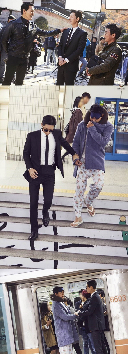 속내를 짐작할 수 없는 김설우와 반전매력으로 중무장한 여운광이 만나 의외의 콤비를 이뤄나가며 드라마를 압도할 예정. 실제로 5일 공개된 촬영 스틸컷에는 톱스타의 여유로운 아우라를 뽐내다가도 플라워 프린트 잠옷 차림으로 지하철로 향하는 박성웅과 그를 철벽 경호하고 있는 박해진의 모습이 담겨 기대감을 끌어올렸다.