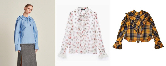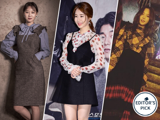 공효진은 탈부착 가능한 러플 칼라가 포인트인 셔츠를 선택했습니다. 트렌디한 긴 소매와 커프스가 엣지있으며, 러플 칼라와 함께 착용하면 보다 소녀스럽게, 러플 칼라를 분리하면 보다 시크하게 연출할 수 있어 활용도가 높은 아이템이죠. 로브로브서울 제품.