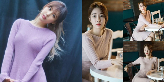 심플하고 베이직한 디자인 이외에도 니트 원피스는 컬러감으로 느낌을 더욱 살릴 수 있다. 티아라 큐리가 선택한 핑크 원피스는 귀엽고 발랄한 이미지를, 유인나가 선택한 베이지 누드톤 드레스는 밝은 컬러감으로 단정하면서도 얼굴을 밝혀주는 포인트가 된다.