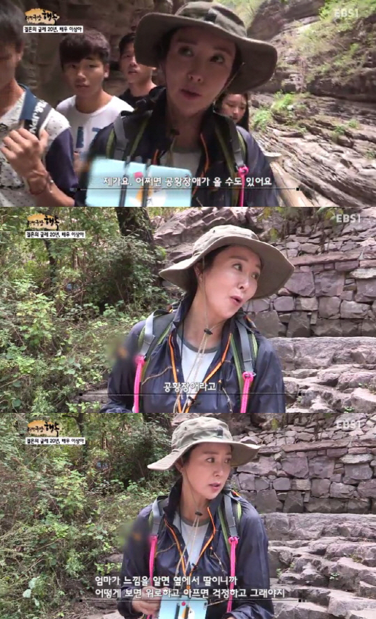 6일 밤 방송된 EBS1 '리얼극장-행복'에서는 이상아 모녀가 7박 8일에 걸쳐 중국 청도로 여행을 떠나 서로의 속마음을 털어놓는 시간을 가졌다.