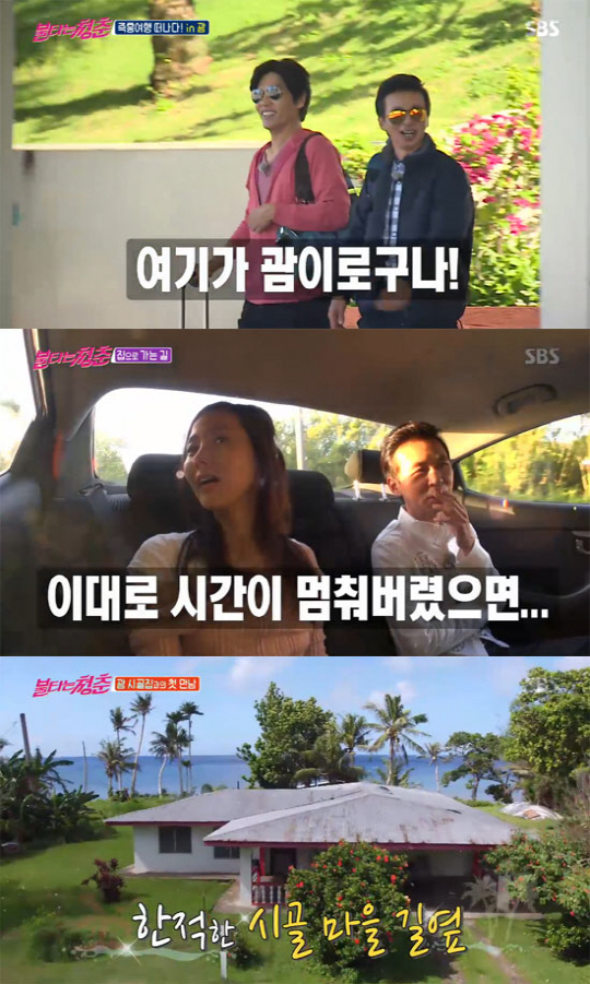 6일 방송된 SBS '불타는 청춘'에서는 괌으로 떠난 10인의 이야기가 펼쳐진다. 지난주까지 3주 동안 강원도 양양으로 떠나 깨알같은 여행기를 선보였던 멤버들은 낭만의 섬 괌으로 여행을 떠난 늦깍이 청춘들의 모습이 그려졌다.