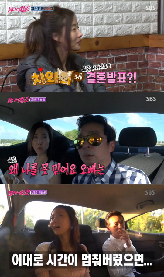 김국진은 괌의 자연 경관에 반했다. "바다도 있고 산도 있다. 웬만한 영화보다 좋다"라며 감탄했다. "이대로 계속 있었으면 좋겠다"는 김국진의 말에 응답하는 강수지. '불타는 청춘'의 '연말특집'은 두 사람의 미리보는 신혼여행이 될 것 같다.