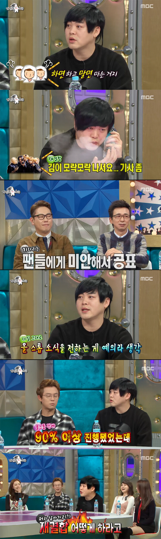 또 문희준은 "강타도 요즘 머리가 좀 날아갔다. 안 보는 게 낫다"는 김구라의 말에 "그렇게 말하면 재결합 어떻게 하라고, 펌프질 좀 해줘야하는 거 아니냐"고 발끈하기도 했다.