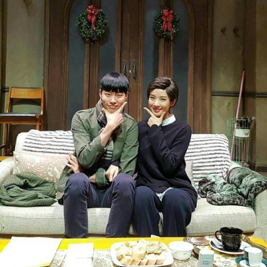 류준열은 연극 무대에 그대로 앉아 소속사 선배 이청아와 인증샷을 찍은 것으로 보인다.