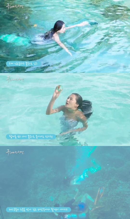 가슴까지 비늘이 올라온 상반신 스윔 수트를 입게 된 전지현. 하지만 문제는 하반신이었다. 인어의 상징이자 시청자에게 가장 쉽게 인어를 인식시킬 수 있는 꼬리를 표현하는 게 관건이었다. 그 누구도 시도해보지 못한 도전이었기에 '푸른바다의 전설' 제작진도 가장 공을 들인 대목이다.