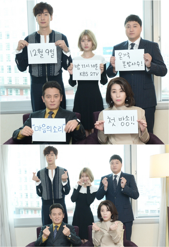 공개된 스틸 속 이광수-정소민-김대명-김병옥-김미경은 하나같이 정색을 하고 있어 눈길을 끈다. 특히 다섯 배우는 한껏 진지한 표정으로 '12월 9일 밤 11시 10분 KBS 2TV 온 가족 본방사수! "마음의 소리" 첫 방송!!'이라는 문구가 담긴 종이를 나눠 들고 있는데, 그 모습이 너무도 귀여워 보여 보는 이들로 하여금 웃음을 자아낸다.