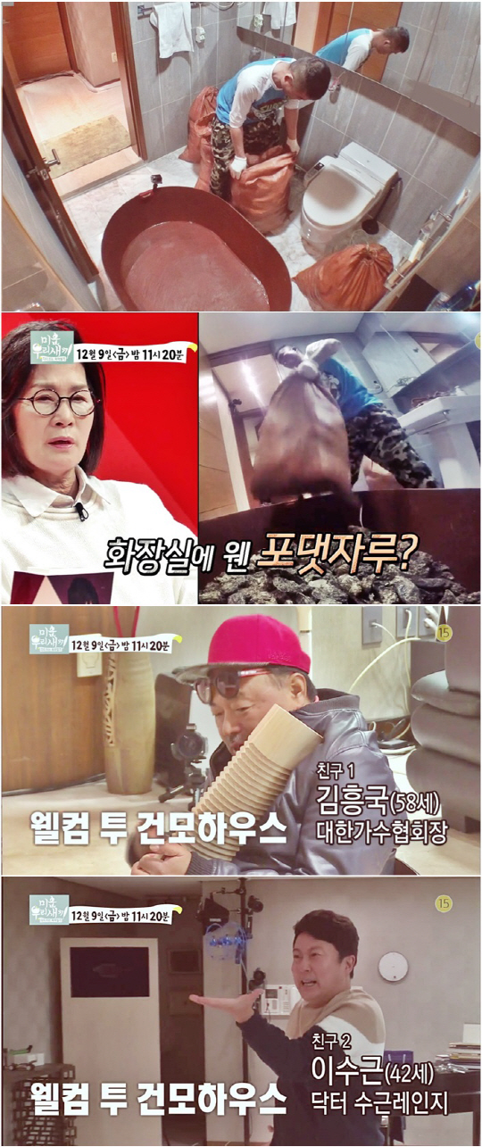 이어 김건모의 욕실에 쌓여있는 다량의 석화가 공개됐고, 김건모는 난감해 하며 지인들을 집으로 초대했다.