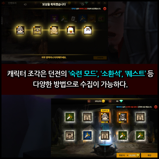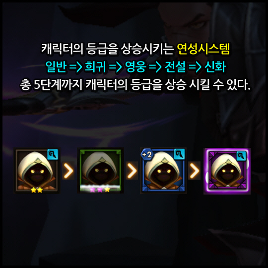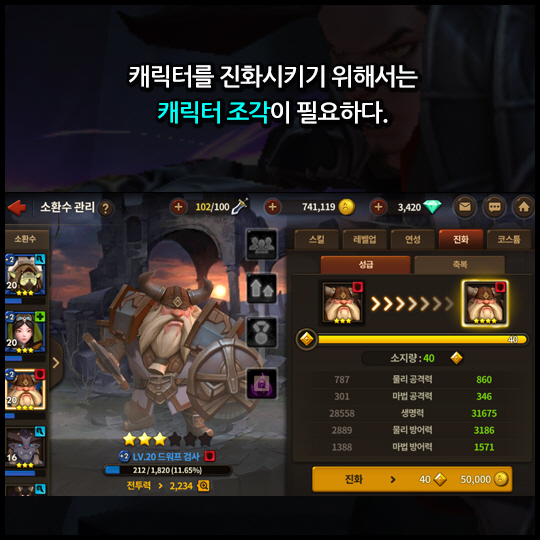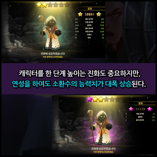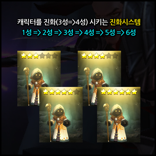 캐릭터를 진화(3성=>4성) 시키는 진화시스템 1성 => 2성 => 3성 => 4성 => 5성 => 6성