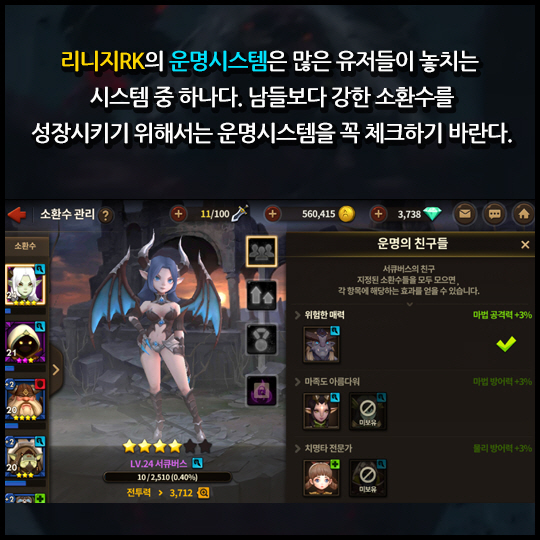 리니지RK의 운명시스템은 많은 유저들이 놓치는 시스템 중 하나다. 남들보다 강한 소환수를 성장시키기 위해서는 운명시스템을 꼭 체크하기 바란다.