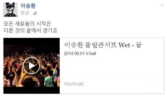 [스포츠조선닷컴 정안지 기자] 가수 이승환이 박근혜 대통령 탄핵 가결 관련한 글을 게재했다.