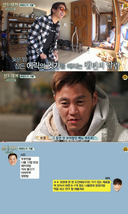 9일 tvN '삼시세끼'에서 나영석PD는 에릭에게 "평소에 이서진이 무슨 카톡을 보내냐"고 물었다.