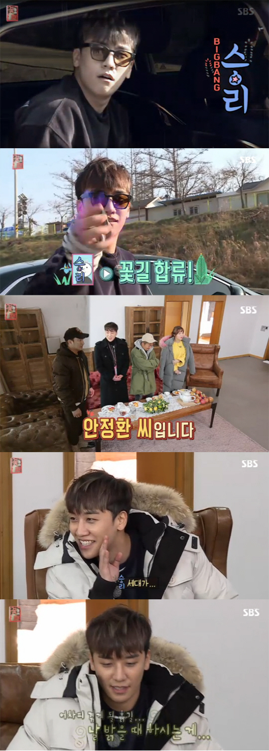 승리는 11일 방송한 SBS '일요일이 좋다-꽃놀이패'(이하 '꽃놀이패')에 출연했다. 2년만의 국내 예능 출연인 셈.
