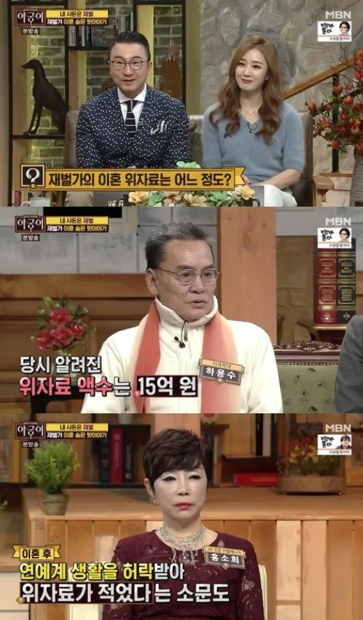 또한 기자는 "고현정은 위자료를 적게 받았더라도 연예계 복귀가 더 나은 거 같다"라고 말했고, VIP 결혼 전문 매니저 홍소희는 "재벌가와 이혼을 했을 경우 여자 쪽은 갑과 을 중 을이 된다"라며 안타까워했다.