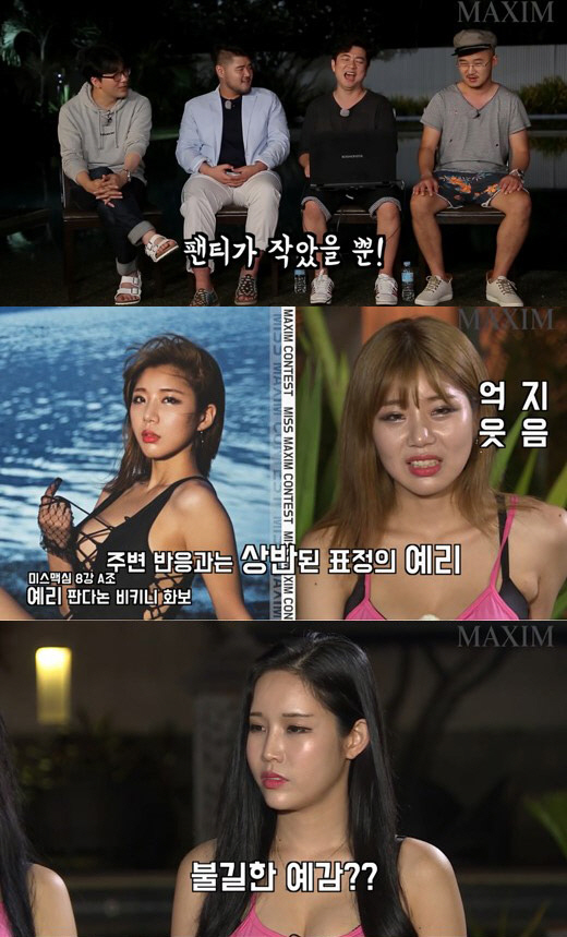 한 맥심 에디터는 상대 팀의 화보를 보고 "비키니 화보 대결인데 세미누드는 반칙이다"고 화를 내자 "손 비키니다, 반키니(반만 비키니를 입었다)다"며 응수하는가 하면, "티팬티도 반칙 아니냐"며 태클을 걸기도 했다.