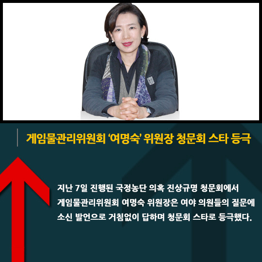 - 게임물관리위원회 '여명숙' 위원장 청문회 스타 등극