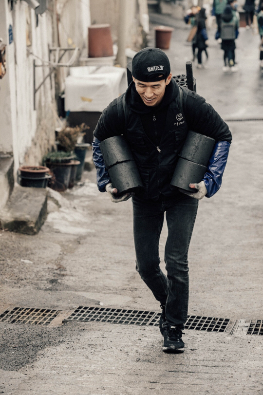션은 지난 12일 서울 노원구 중계본동 백사마을에서 연탄을 나누는 봉사활동에 참여했다.