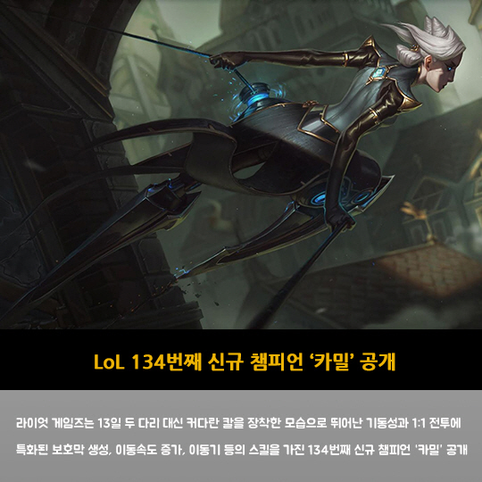 - LoL 134번째 신규 챔피언 '카밀' 공개