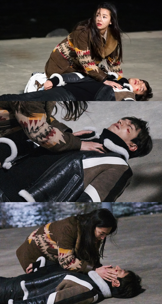 [스포츠조선닷컴 김영록 기자]'푸른 바다의 전설' 이민호가 상처투성이가 된 채 기절한 모습이 포착됐다. 전지현은 의식을 잃은 채 차가운 바닥에 쓰러진 이민호를 바라보고 있다. 준청커플의 핑크빛 전선에 적신호가 켜졌다.